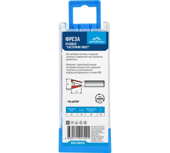 Фреза ласточкин хвост PROCUT HW монолитная, 18 Z=2, D=7.94x6.34x44, левое вращение, S=6 206610APL
