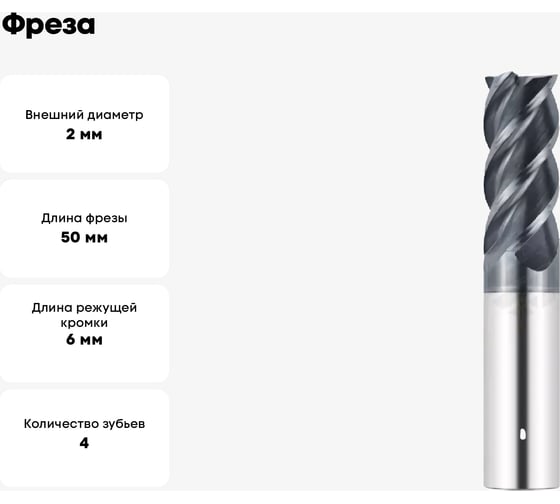 Фреза твердосплавная VEREHORN GM-2E-D2.0S KMG303 42393