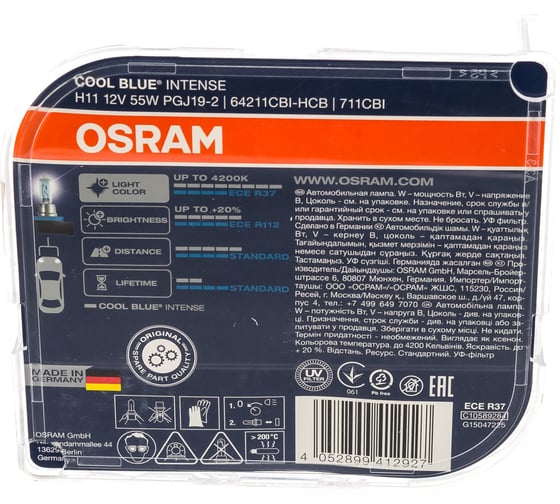 Автолампа OSRAM H11 55 PGJ19-2+20% BLUE INTENSE 4200K 12V,1,10 64211CBI-HCB