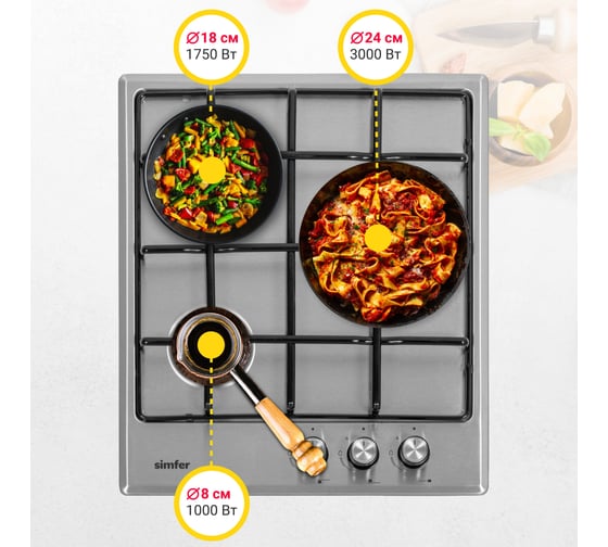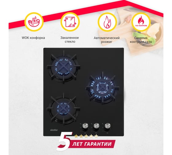Газовая варочная поверхность SImfer решетки lama, газ-контроль, wok-конфорка H45V35R516