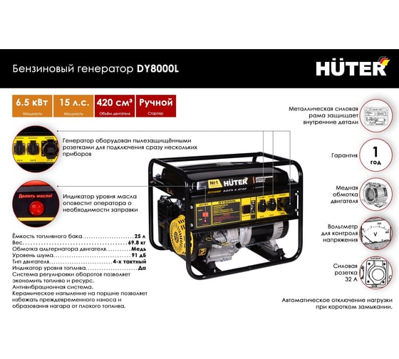 Электрогенератор Huter DY6,5LX-электростартер 64/1/75
