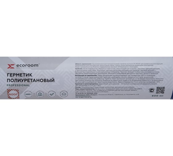 Полиуретановый герметик для кровли ECOROOM ROOF черный, 600 мл E-PUгер-3678/черн