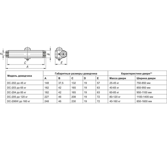 Дверной доводчик DORF economy l-8222 45 кг, серебро, 1 к - 1 шт. eco L8222_siver_eco