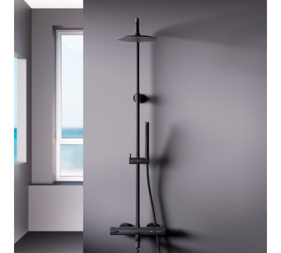 Душевая система Damixa Scandinavian Pure с ванно-душевым термостатическим смесителем, чёрный 936810300