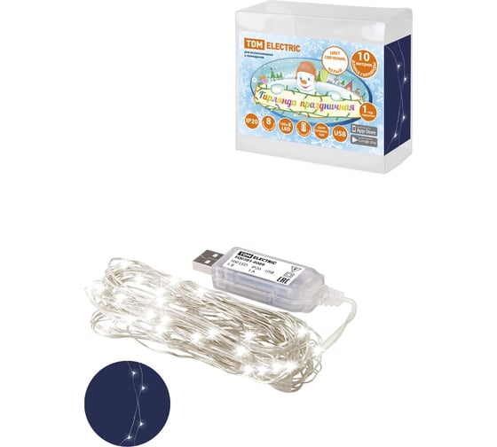 Электрогирлянда GLOS Нить 50 холодных белых LED, 5 метров GL-SP9001