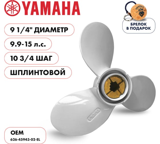 Гребной алюминиевый винт Skipper для Yamaha 9.9-15, 3x9 1/4"x10 3/4" SK626-45943-02-EL