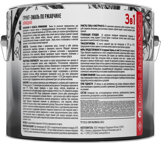 Грунт-эмаль Profilux по ржавчине 3в1 синяя 5 кг Н0000005150