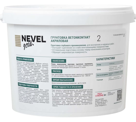 Грунтовка сцепляющая акриловая для наружных и внутренних работ Sinara БЕТОНКОНТАКТ 6кг SP 027