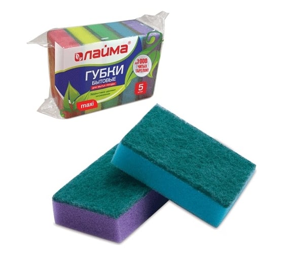 Бытовые губки LAIMA для мытья посуды, комплект 5 шт., 601555