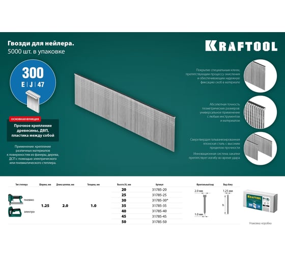 Гвозди для нейлера KRAFTOOL тип 18GA (47/300/F) 20 мм, 5000 шт, 31785-20