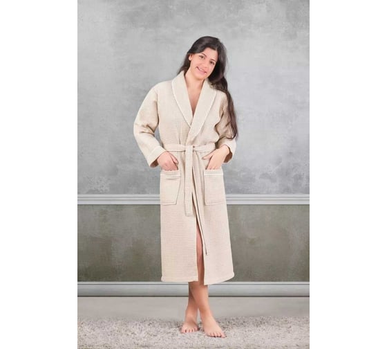 Вафельный халат Экономь и Я женский, рукав 3/4, р.46-48, бежевый, 100% хлопок, 200г/м2 4362720