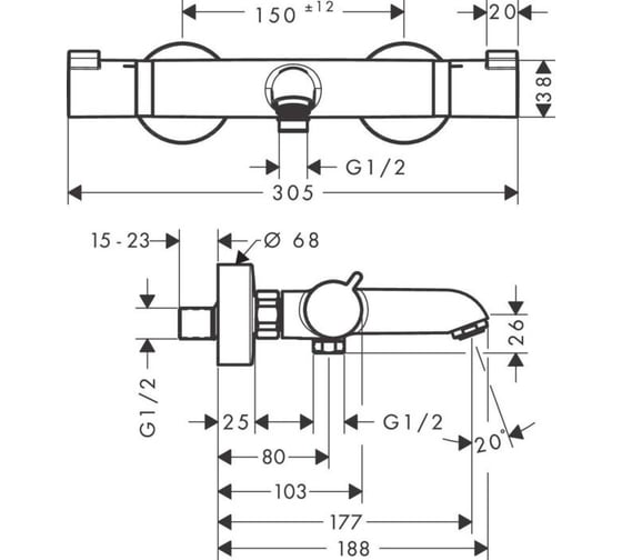 Термостат для ванны Hansgrohe Ecostat Comfort Care, ВМ, 1/2' 13115000 00054281