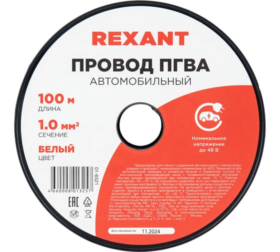 Провод REXANT ПГВА 1х2.50 мм2, черный, бухта 100 м 01-6546
