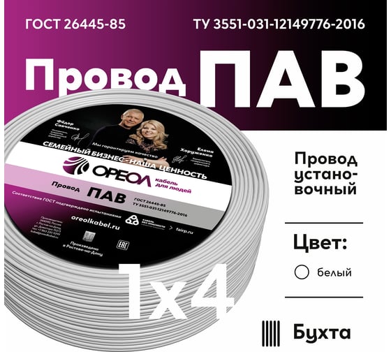 Провод ОРЕОЛ ПАВ 1х4 АПВ 100м 00-00001835