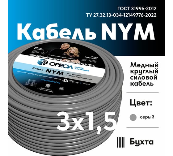 Провод пвсн NVO 3x1,5 гост белый (60 метров) NVO-PVSN-315-60-W