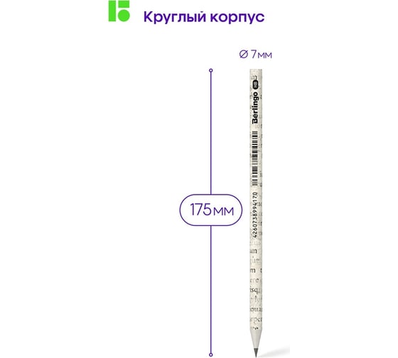 Чернографитный карандаш Berlingo collision hb, круглый, заточенный, ассорти BP00S05