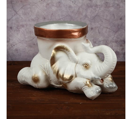 Фигурное кашпо Сималенд Слон с горшком белый, 17х30 см 2694307