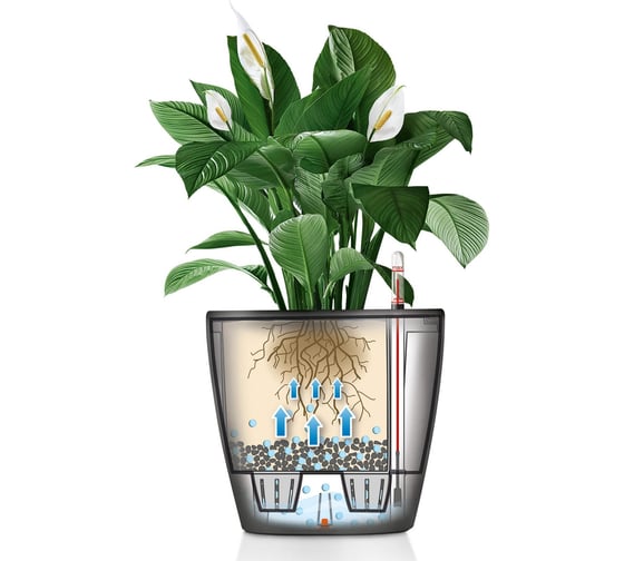 Кашпо IDEA ГРЕВИ D95 мм H105 мм 0,28л с фитильным поливом, белый М 3130