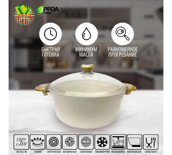 Кастрюля Kukmara 5,2 л со стеклянной крышкой, антипригарное покрытие линия Stella cappuccino кск52а