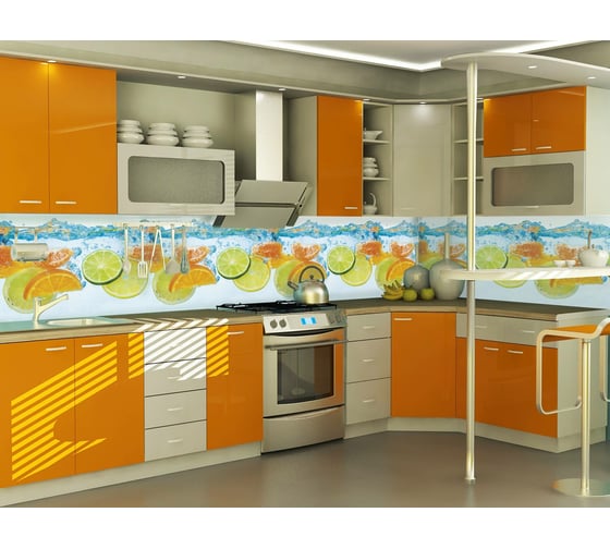 Панель для кухонного фартука ФАРТУКОФФ глянцевая "ФФ - 2", 3000x600x1,0 мм, Фотопечать 35010020403