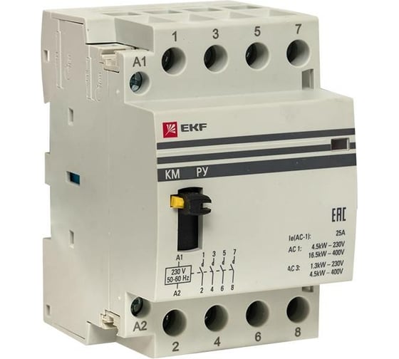 Контактор модульный EKF КМ 100А, 4NC, 230VAC, 6 модулей AVERES km-av-6-100-04-230V