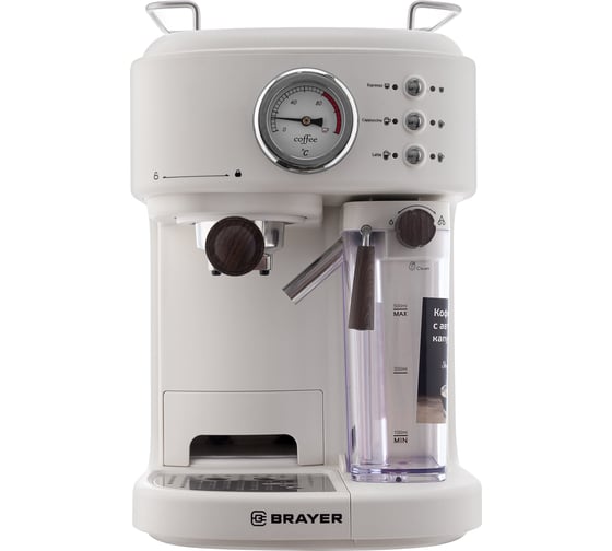 Рожковая кофеварка BRAYER 1.5 л, 1200 Вт, 20 бар, капучинатор, термометр BR1101