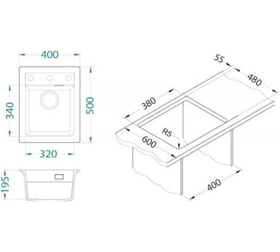 Мойка ALVEUS GRANITAL ATROX 10 CARBON - G91 400x500 в комплекте с сифоном 1139771