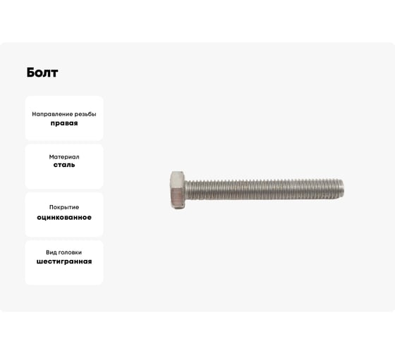 Болт ЦКИ DIN 933, М20x60 мм, 10.9, цинк, SW 30, 2 шт. 39664