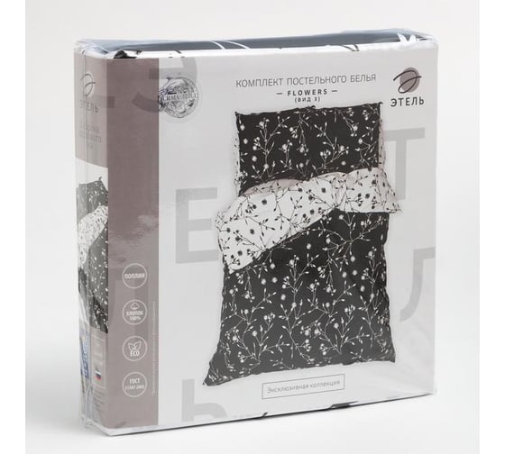 Комплект постельного белья Этель 2 спальный, Black leaves 175x215 см, 200x220 см, 70x70 см - 2 шт., поплин 125 г/м2 9423672