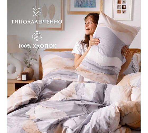 Комплект постельного белья Этель дуэт, Солнечное утро 143*215 2 шт, 220*240, 70*70 2 шт, поплин 125 г/м2 10801839