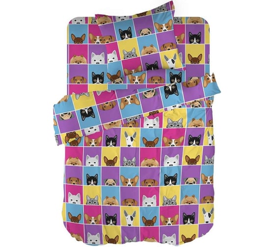 Комплект постельного белья Этель 1,5 сп Funny cat, 143x215 см, 150x214 см, 50x70 см -1 шт, 100% хлопок, бязь 9935632