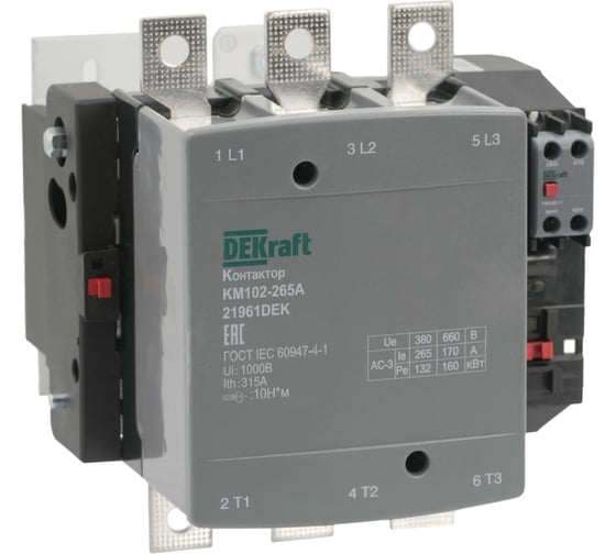 Контактор AC3 DEKraft КМ-103, 3 Р, 185 A, 220 B, 690 В 22154DEK