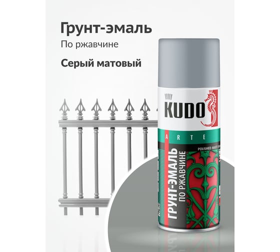 Грунт-эмаль по ржавчине матовая высокопрочная в баллончике KUDO RAL 7042 серая KU-317042