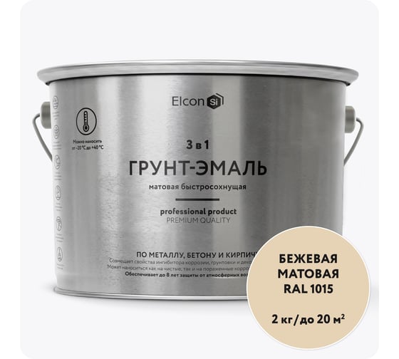 Грунт-эмаль 3 в1 Elcon графит RAL 7024, матовая, графит 2 кг 00-00463008