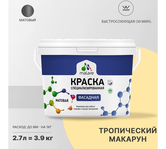 Краска White Line ВД эластичная RAL 7047 теле-серый 4 ведро 2,7 л, 4,2 кг 4690417116034