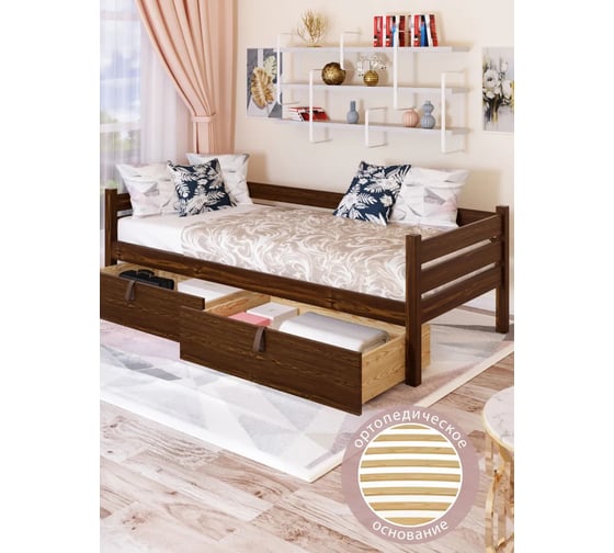 Односпальная кровать Solarius Мишка Компакт сосновая, со сплошным основанием, венге 80x190 см mkompakt80venge-190-full