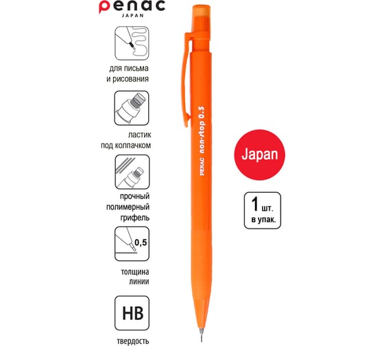 Механический карандаш Penac protti prc 107, 0.7 мм, hb, желтый, блистер картон MP0107-YL-05/B