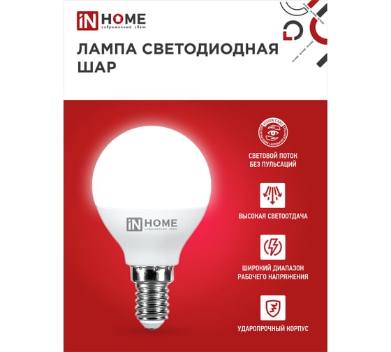 Светодиодная лампа IN HOME LED-ШАР-VC 6Вт 230В Е14 4000К 570Лм 4690612020518