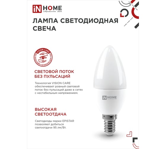 Светодиодная лампа IN HOME LED-СВЕЧА-VC 8Вт 230В Е14 3000К 760Лм 4690612020426