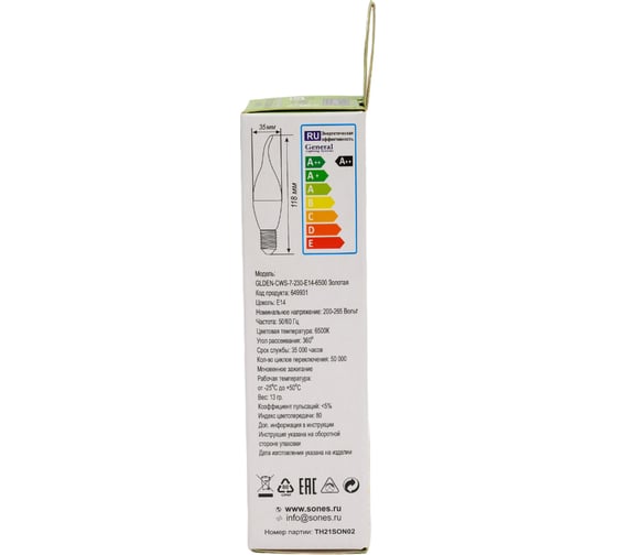 Лампа светодиодная E14 «Винтаж» золотистая, свеча на ветру, WFС37, 7 Вт, 230 В, 2700К TDM ELECTRIC SQ0340-0348