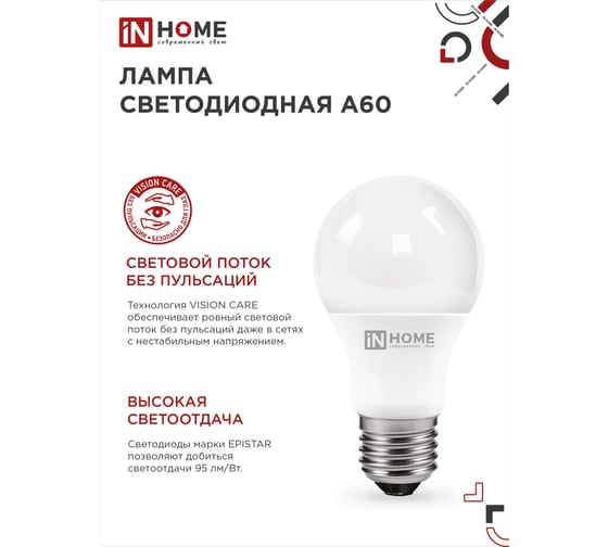 Светодиодная лампа IN HOME LED-A60-VC 15Вт 230В Е27 3000К 1430Лм 4690612020266