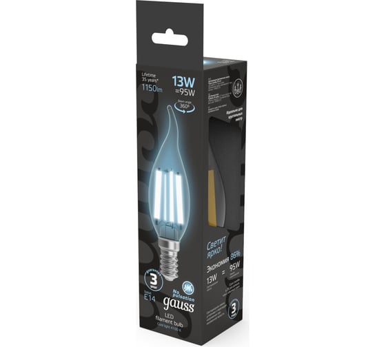 Лампа LED Gauss Filament Свеча на ветру E14 11W 720lm 2700K 104801111