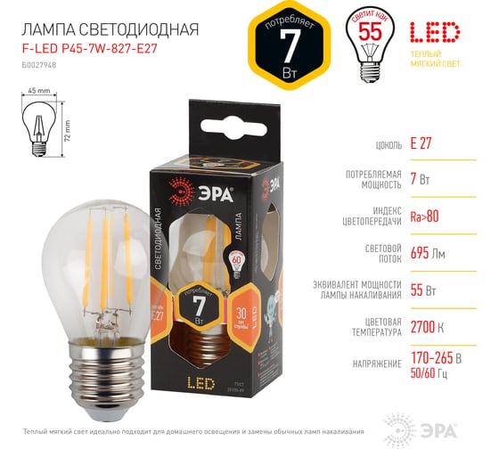 Лампа Navigator NLL-F-G45-4-230-4K-E27 61343