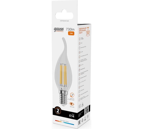Лампа Gauss Basic Filament Свеча 5W 600lm 4000K E14 LED 50312252
