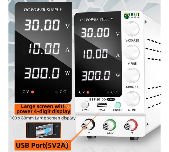 Лабораторный источник питания BestTool BST-3010D 30В, 10А, 300Вт, 1 канал 145810