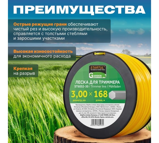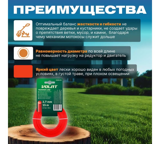 Леска 3 мм, 15 м, шестигранное сечение ВОЛАТ 51040-03