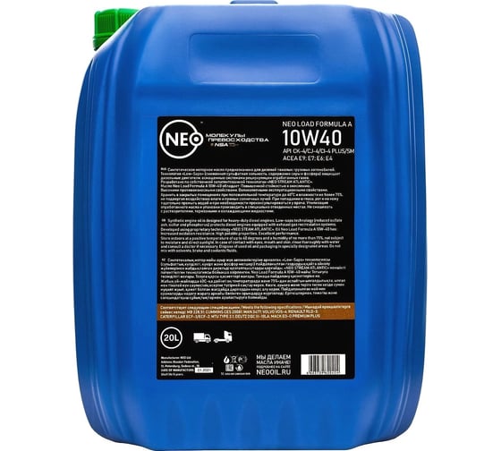 Моторное масло NEO Load Formula A 10w30, синтетическое CK-4/CJ-4/CI-4plus/SM, E9/E7/E6/E4, 20 л NLFA01030020