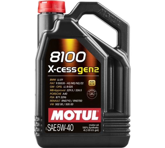 100% cинтетическое масло MOTUL 8100 X-cess GEN2 5W40 4л 111858