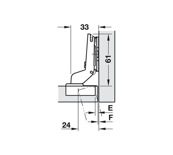 Петля Hettich Sensys 8645i ТН 52 угол откр. 110 для навески на среднюю стенку 9071206