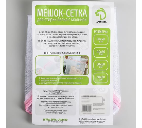 Мешок для стирки Доляна крупная сетка, 180 гр. 37.5х26 см 4439029